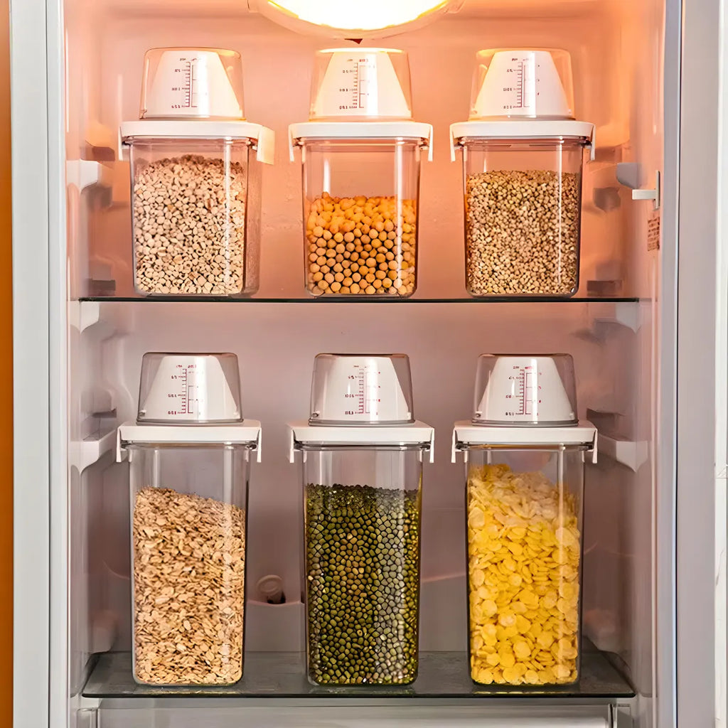 Recipiente de Armazenamento de Alimentos com Copo Dosador – Praticidade, Segurança e Organização
