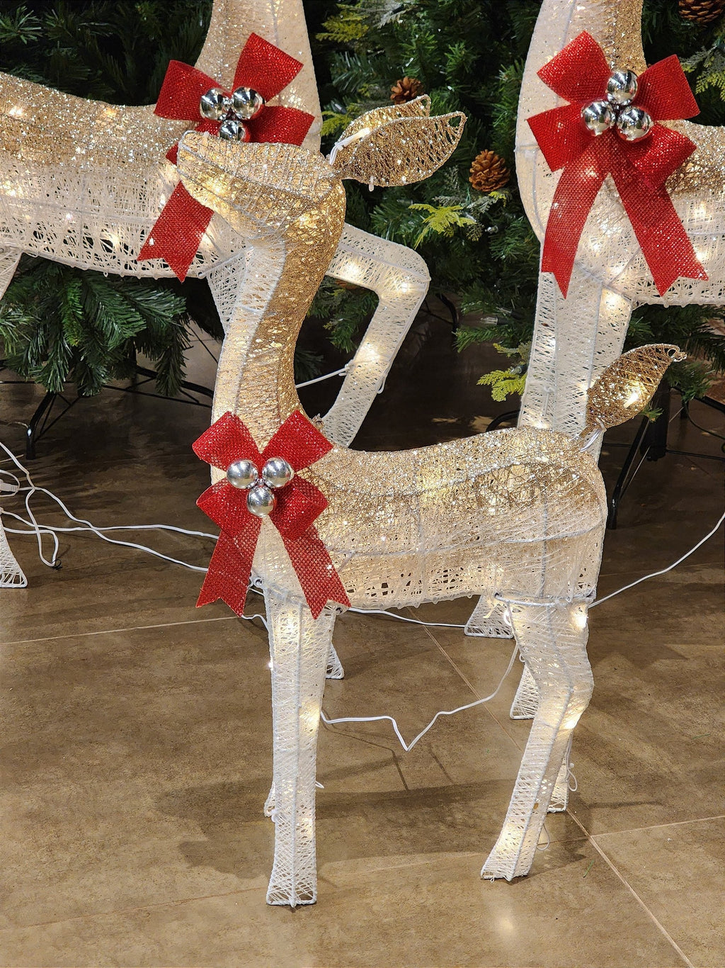 TRIO DE RENAS ARAMADA BRANCA COM CHAMPANHE WARM USO INTERNO E EXTERNO BIVOLT